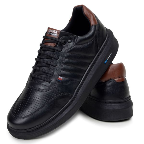 Sapatenis Moderno Detalhado Masculino Em Couro 100% Legitimo Leve Confortável Parra Boots - Preto